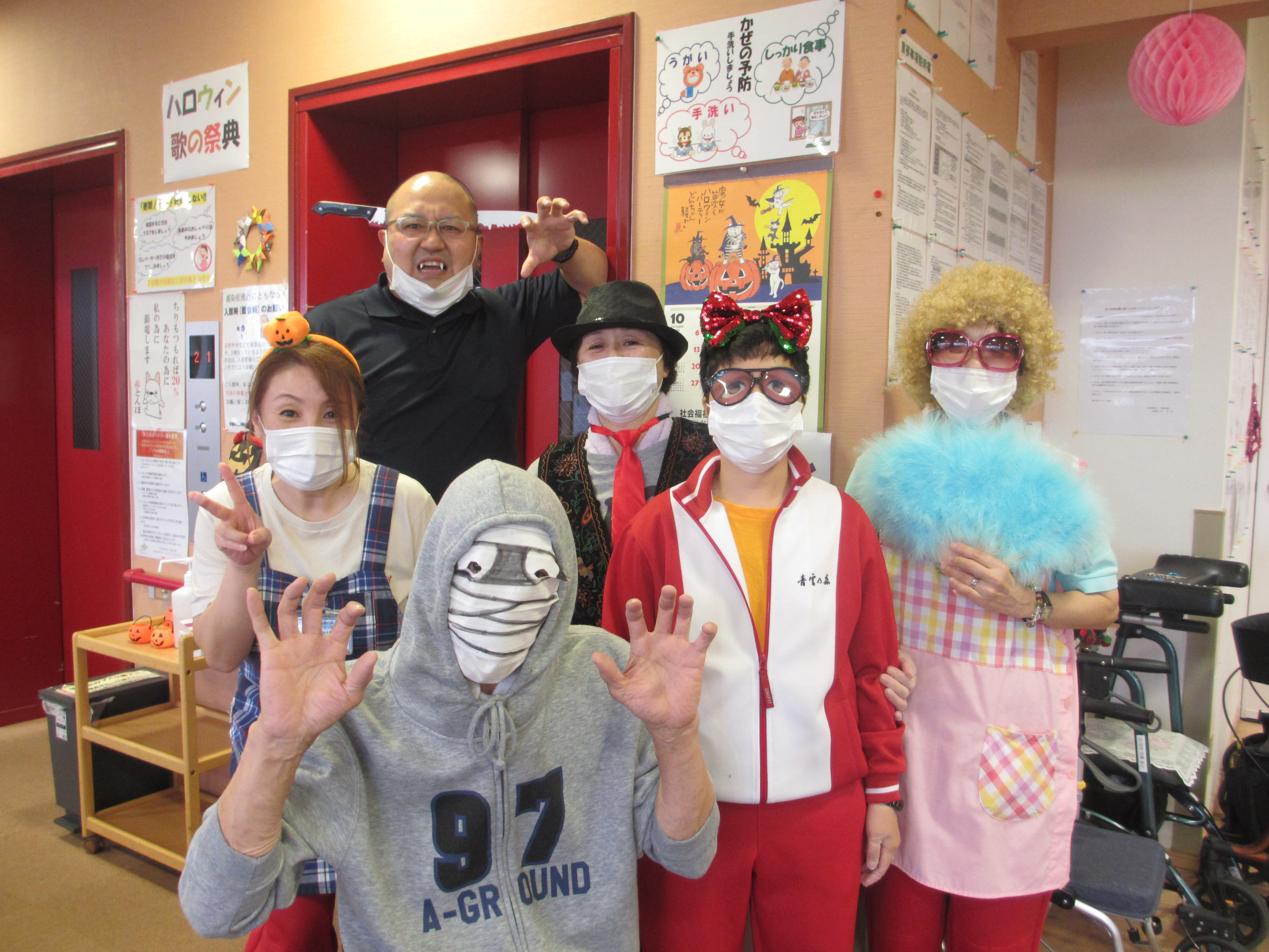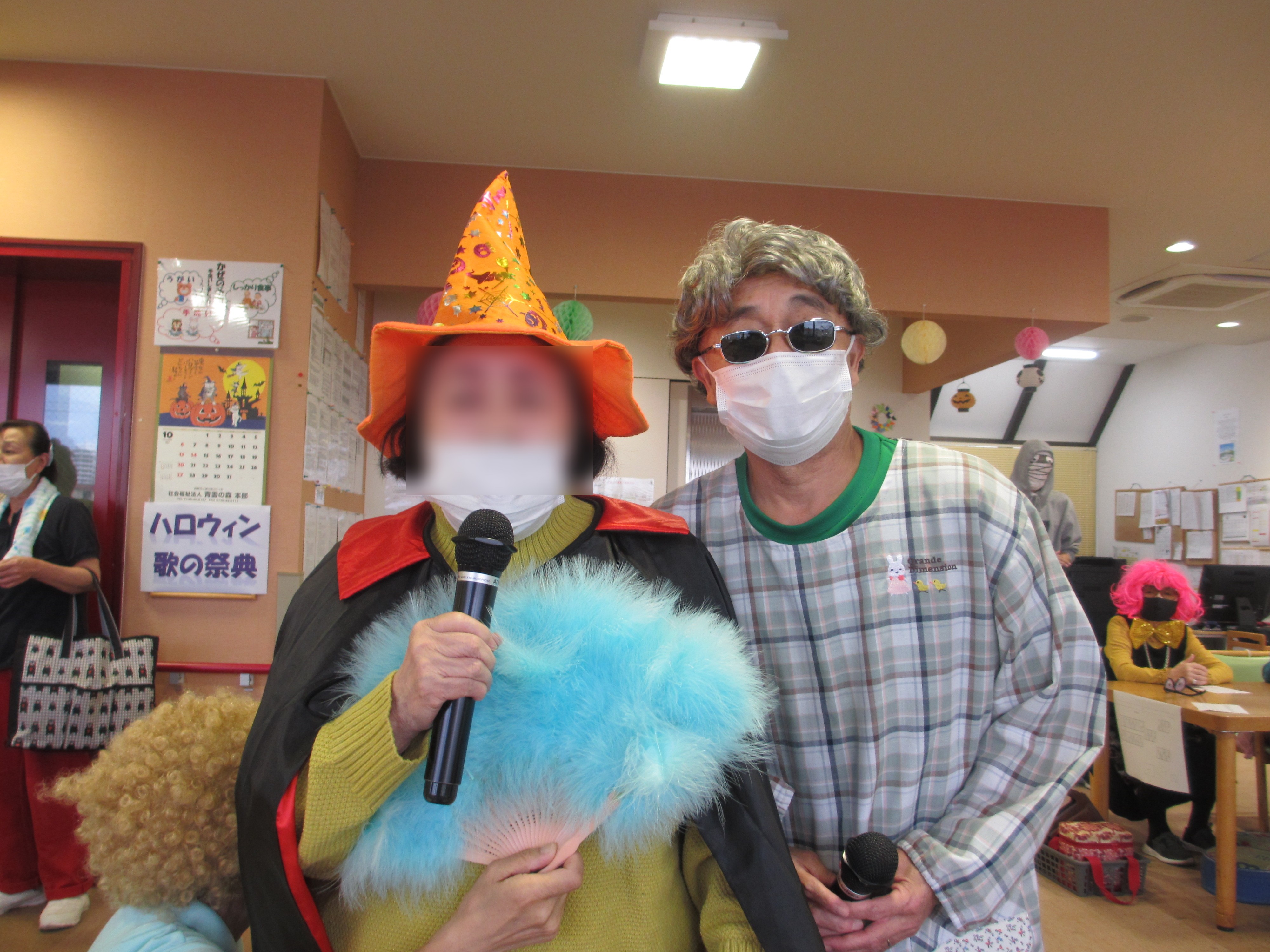 10月のハロウィンの仮装も、すっかりおなじみの行事になりました。元々は、「祖先を敬い悪霊から身を守る、宗教的な行事」だったそうですが、今では「仮装をしてみんなで楽しむ行事」の意味合いが強いのではないでしょうか?「ハロウィン歌の祭典」と題して、カラオケ大会を開催しました。