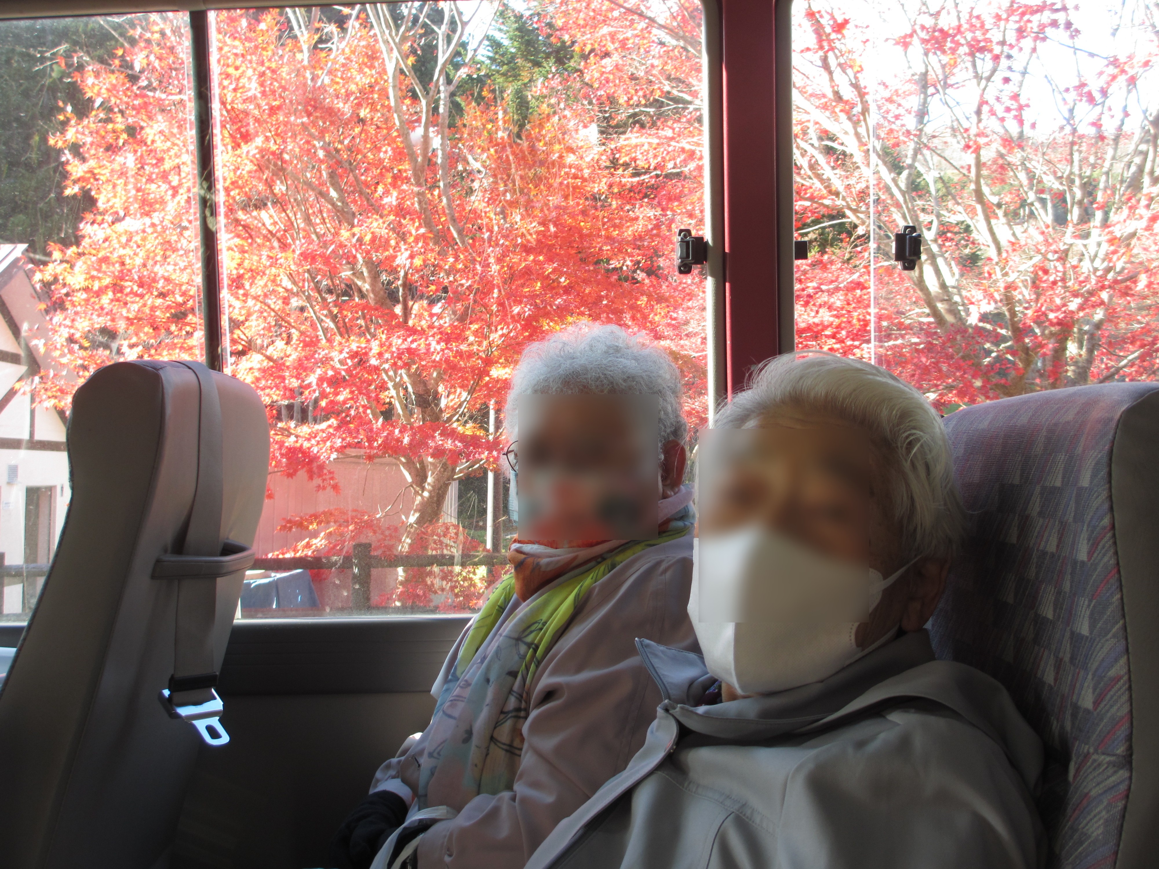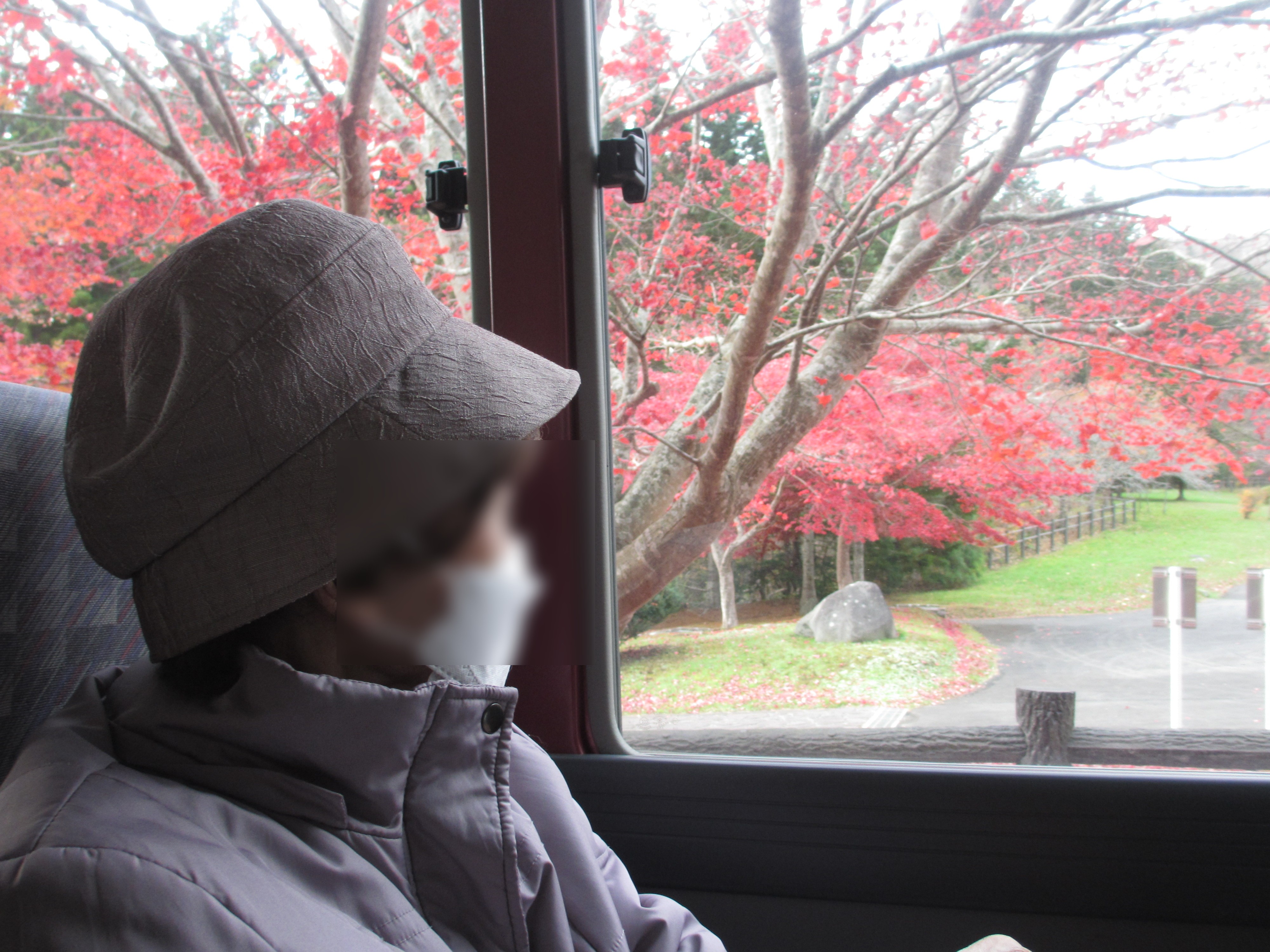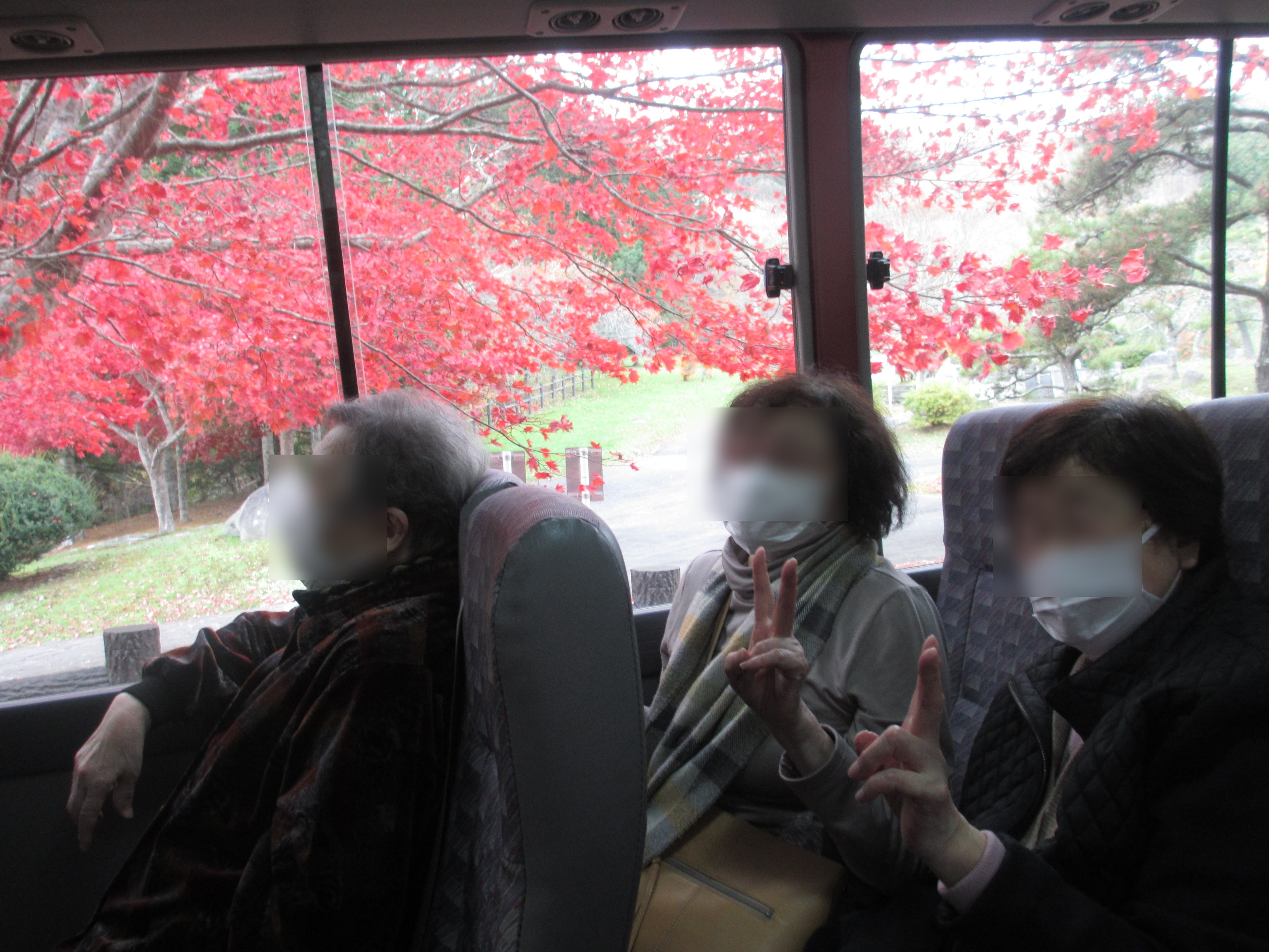バスに乗って、中野ダム方面へ紅葉見学に行きました。北海道の紅葉は葉が黄色くなることが多いですが、この日は真っ赤な紅葉を楽しむことができました。寒さも忘れる見事な紅葉でした!!