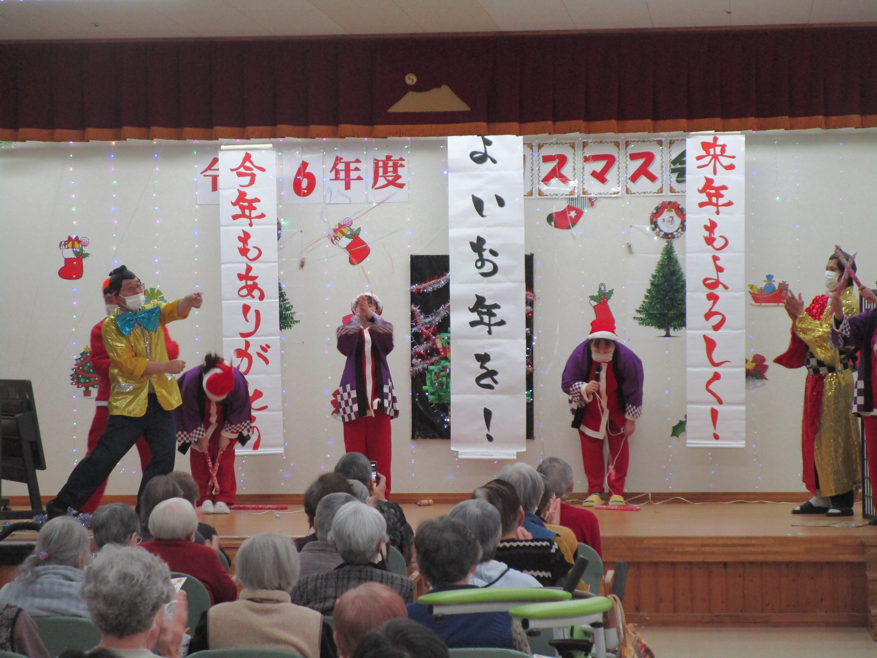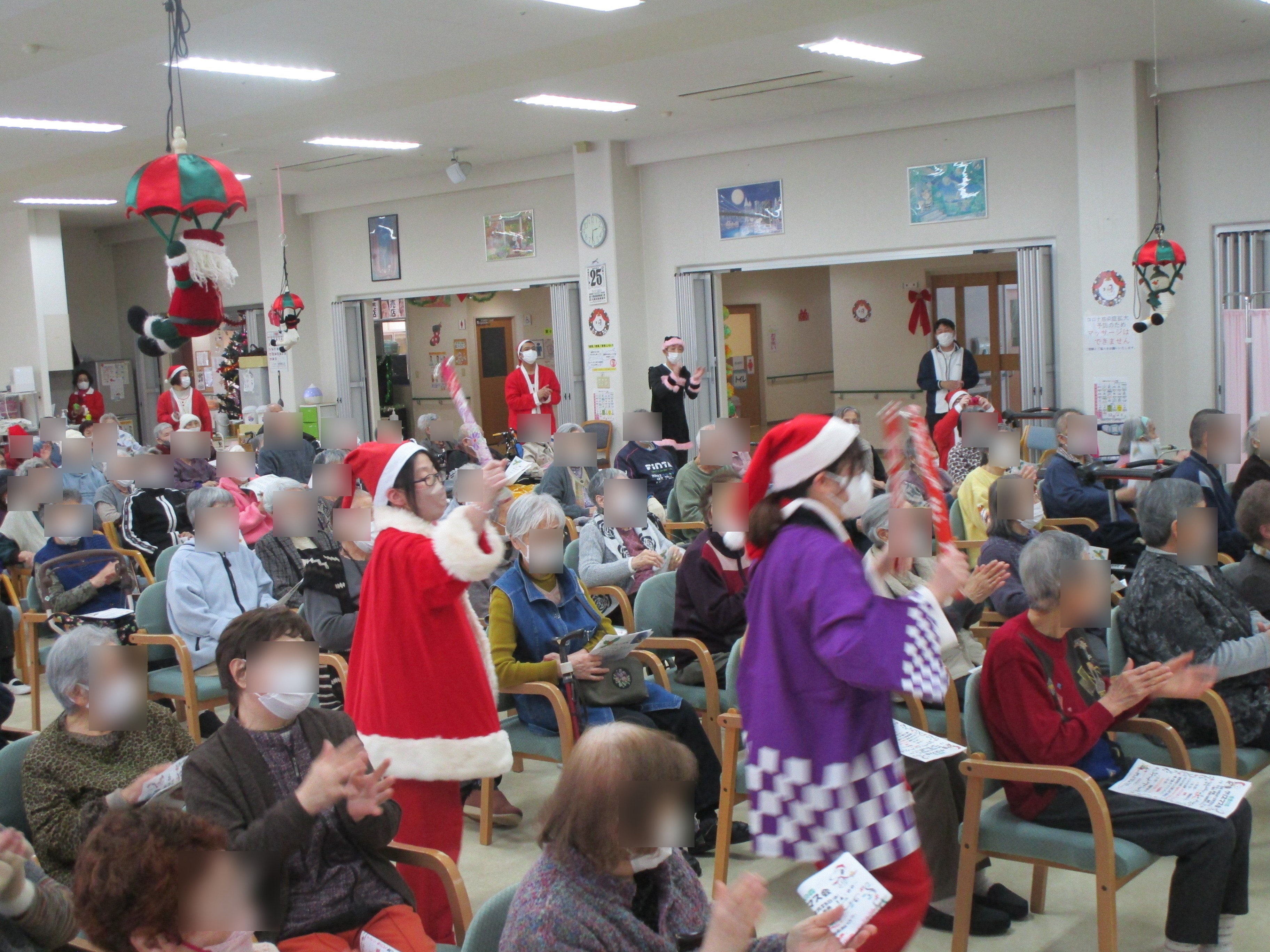 今年も1年ありがとうの感謝を込めて、青雲の森恒例「クリスマス会」を開催し、職員による余興や大抽選会を行いました。皆様が、良い年越しを迎えられますように。そして、来年またお元気で会えますように。